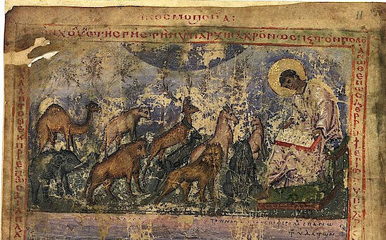 Photo: Prophet Moses writing in Eden. Frontispiece to the book of Genesis in the Bible of Leo Sakellarios, Constantinople, A.D. 940.